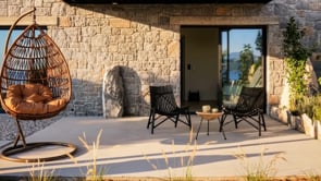 At the patio, the large sofa and sea-facing jacuzzi, invites total relaxation with panoramic sea views — whether you're soaking in silence or enjoying a sunset toast.
